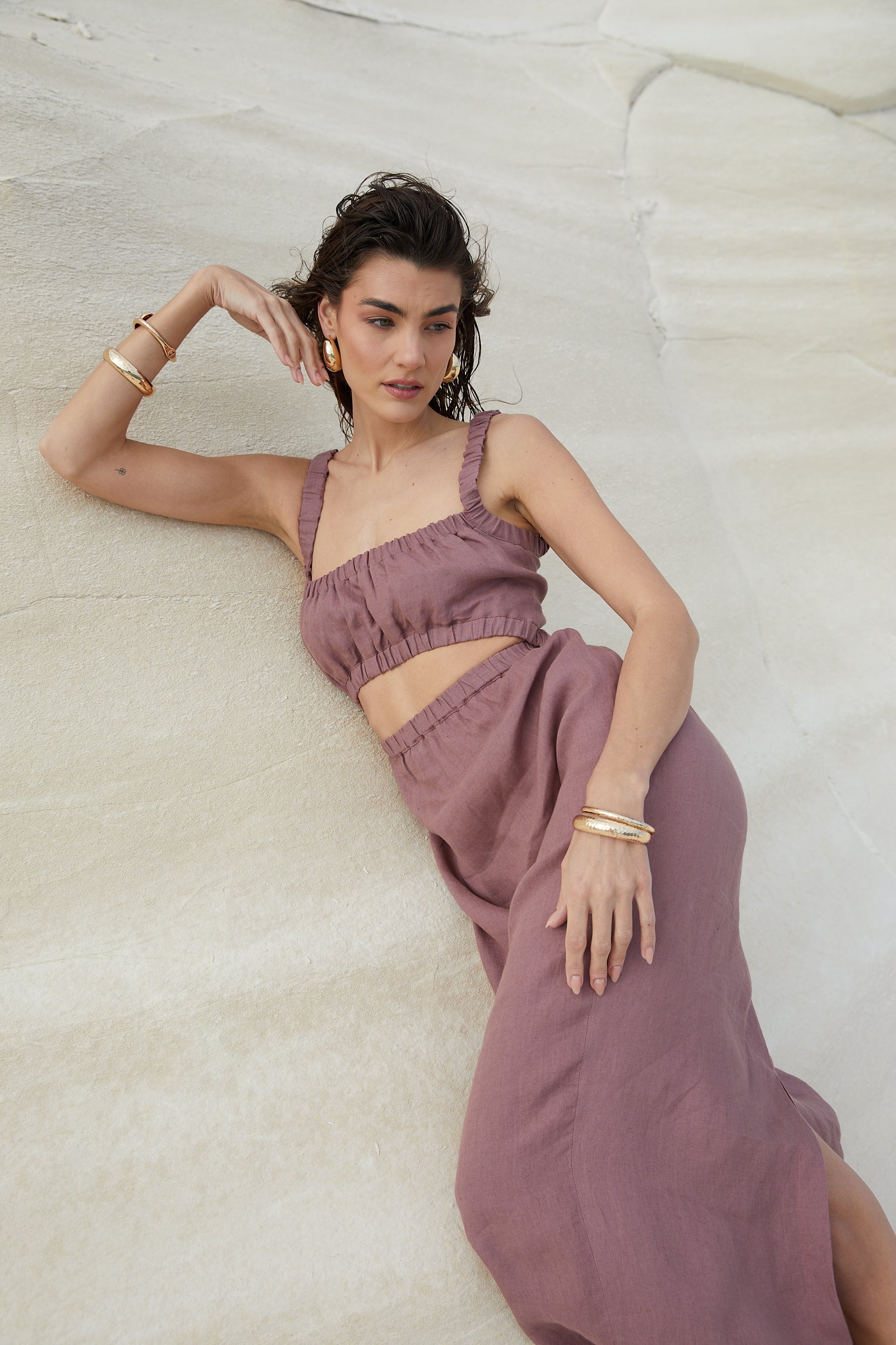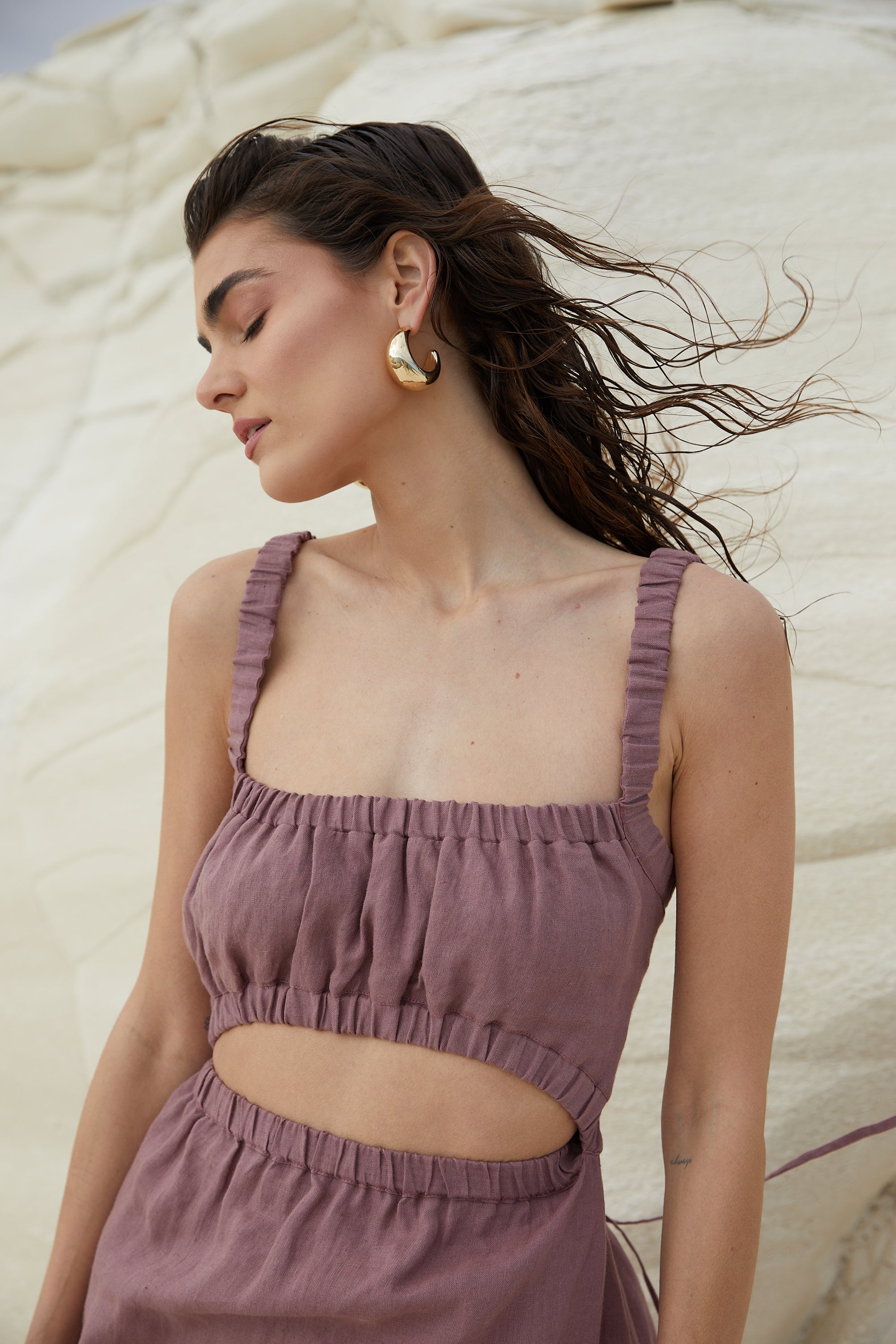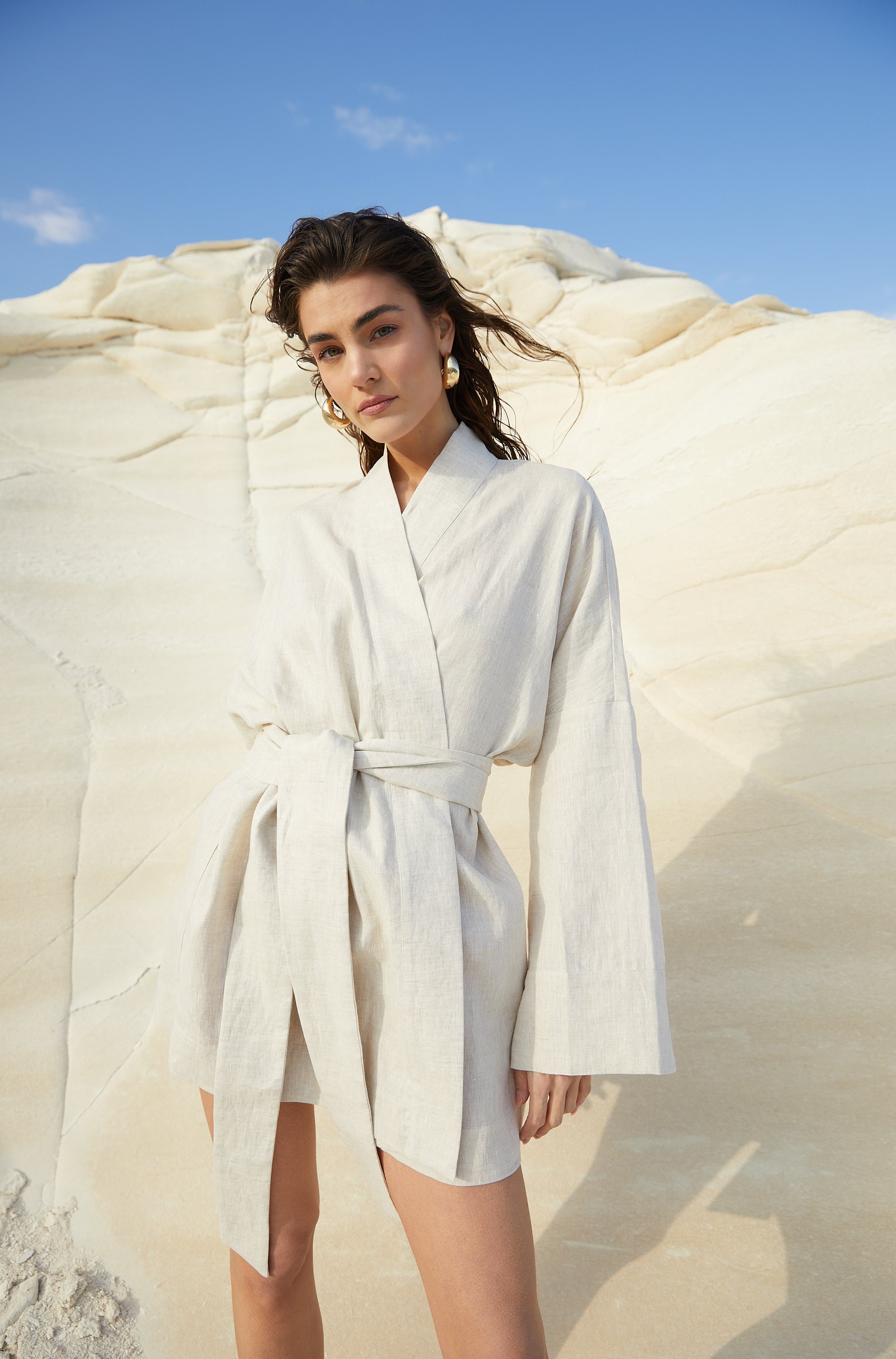 The collection is made from natural fabrics in earthy tones, featuring a minimalist and unique design
